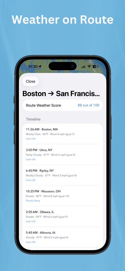 • Send selected routes to Apple Maps or Google Maps for navigation