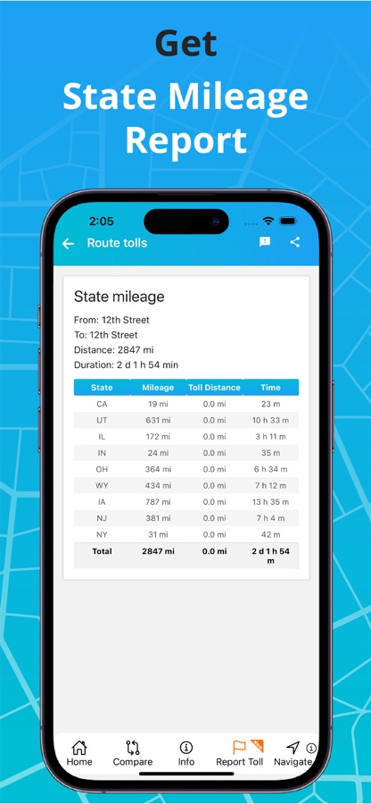 # State Mileage Report