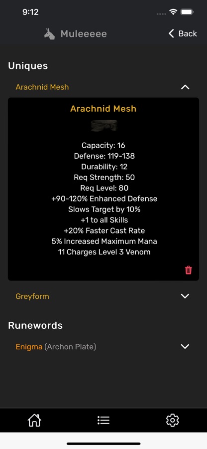 — Your data is now all linked to all sections of the app. View your muled items in the Item Catalog, Runewords or Drop Calculator section.