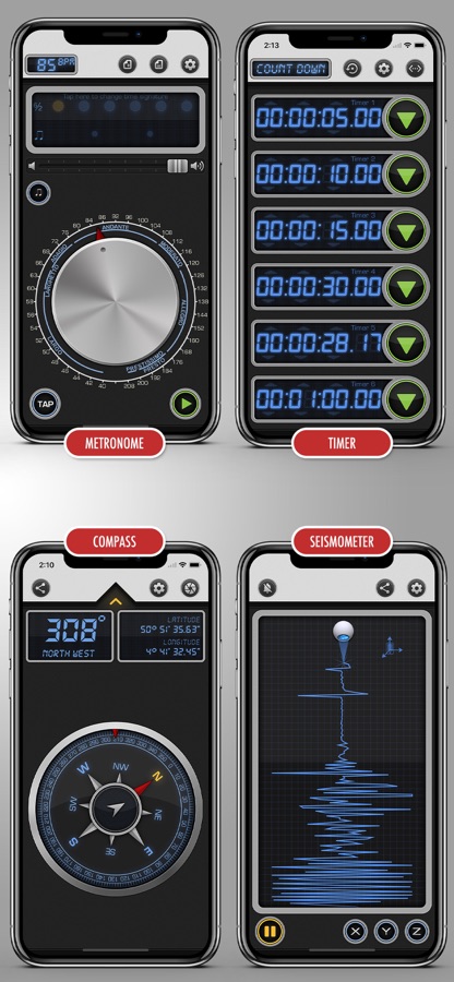 С помощью встроенного акселерометра этот инструмент выявляет и отображает малейшие движения устройства. Воспользуйтесь им для защиты устройства сигнализацией, подобно автомобилю. Или проверьте, насколько плавно едет автомобиль во время тест-драйва. Используя этот инструмент, можно обнаружить даже землетрясение!