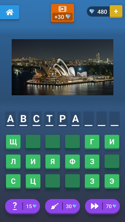 2. «Убрать лишние буквы» — выбрасывает буквы, не имеющие отношения к загаданному слову, чем заметно упрощает прохождение.