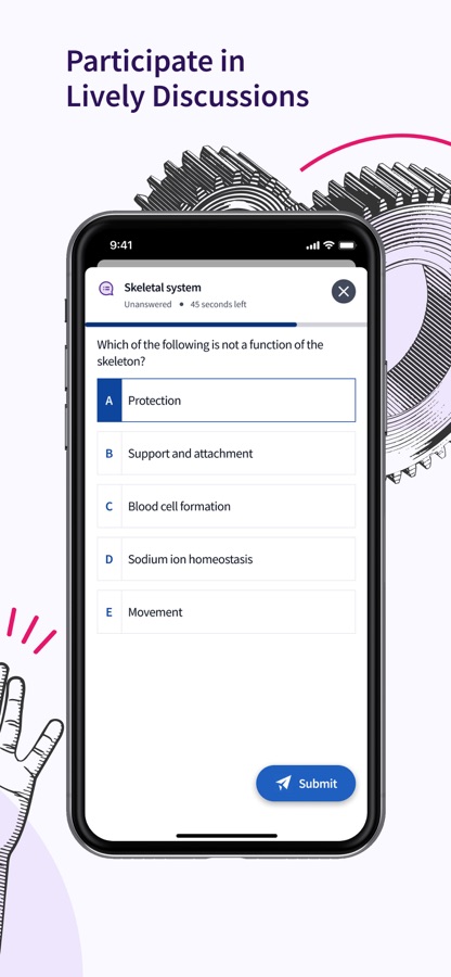 • Participate with your profs and peers using in-app discussions