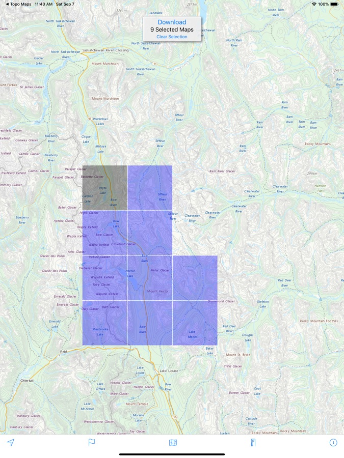 Flags are included with map downloads. Add flags (waypoints) to the map to mark your current location or other locations. Import flags from other sources using GPX files and geocache LOC files. Share flags with others using email or AirDrop. Organize your flag types by color, for example, geocaches, trailheads, and summits.