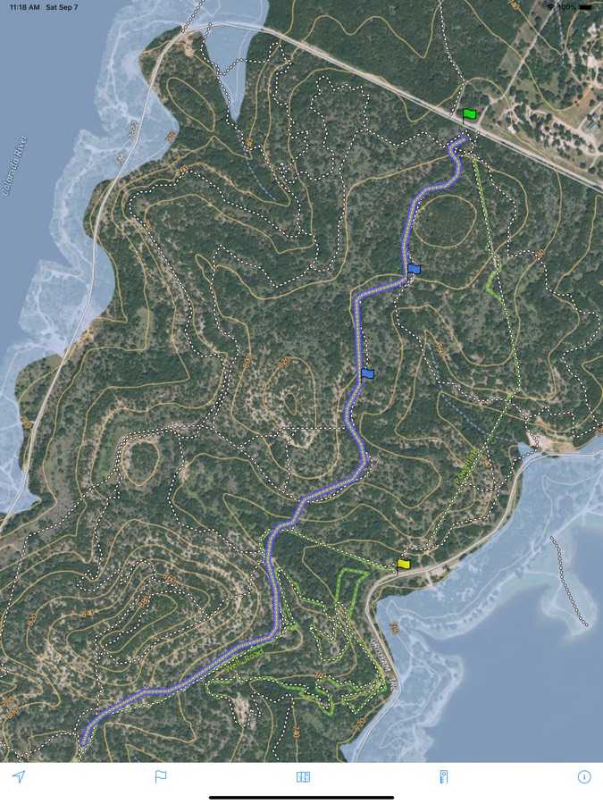 Trails are included with map downloads. Import trails (tracks) using GPX files you find on the Internet or from your personal GPS track collection. Share trails with others using email or AirDrop. Organize your trail types by color, for example, mountain bike trails, hiking trails, and OHV trails.