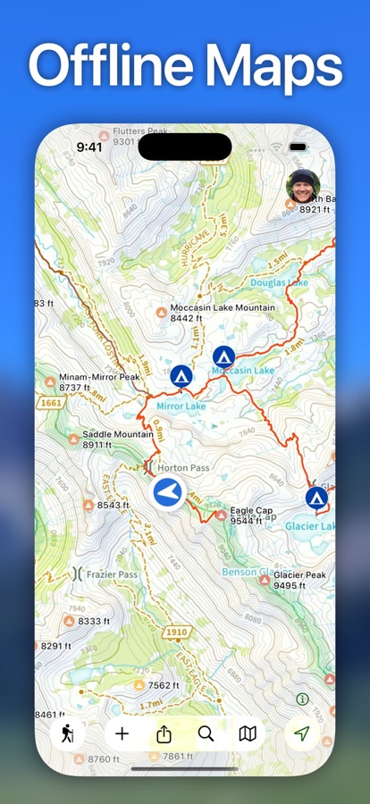 Загруженные топографические карты от USGS, MapBox, NRCAN/GEOBC и Thunderforest в сочетании с данными GPS позволят вам видеть, где именно на карте вы находитесь, даже если вы у потаенного горного озера в нескольких днях пути от ближайшей вышки сотовой связи. Используйте GPS и компас на вашем iPhone, чтобы определять местоположение и соотносить карту с направлением вашего взгляда.