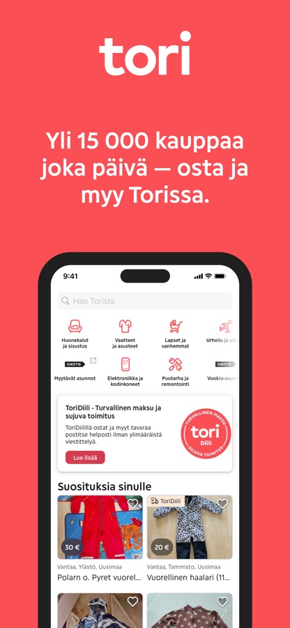 Tori on Suomen suurin ja suosituin kauppapaikka. Joka kuukausi yli 3 miljoonaa suomalaista tekee hyviä kauppoja ja löytöjä Torissa. Uudistetulla Tori-sovelluksella toritus käy entistä sujuvammin ja toiselle tarpeeton löytää uuden kodin toisaalla.