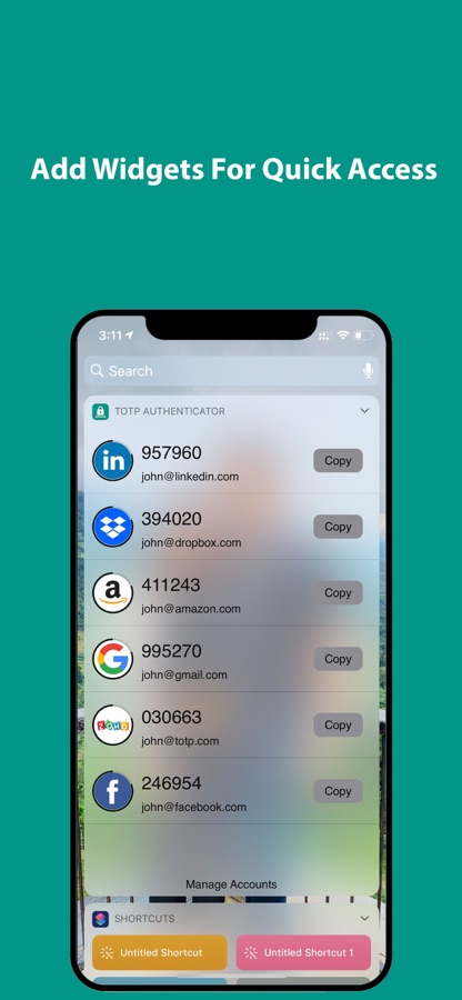 With TOTP Authenticator, you can easily add a widget for your favourite accounts on the home screen for quick access.