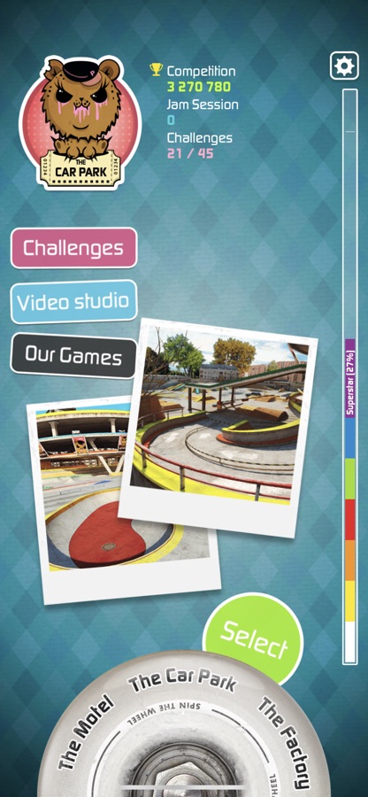 Получайте самые высокие очки в ограниченном во времени режиме соревнования, катайтесь без каких-либо ограничений и выполняйте задания в режиме джем-сешн, бросайте вызов друзьям в режиме многопользовательской поочередной игры S.K.A.T.E или экспортируйте видео-клипы и хвалитесь своими лучшими заездами.