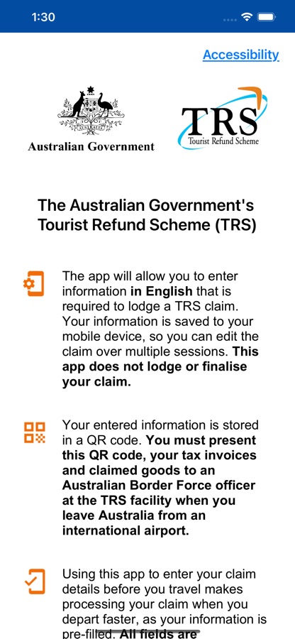 This is the Department of Home Affairs Tourist Refund Scheme (TRS) mobile application (the app).