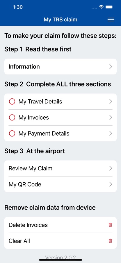 If you successfully enter your claim details using this app, processing your claim at the TRS counter when you depart should be faster and you will be able to use a dedicated queue to lodge your TRS claim.