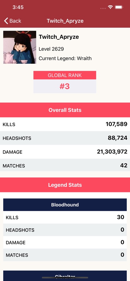 Tracker for Apex Legends gives you the most updated information available by giving you a global rank of where you stand among all players. We also give you your total kills, headshots, damage, and matches played filtered by every Legend played.