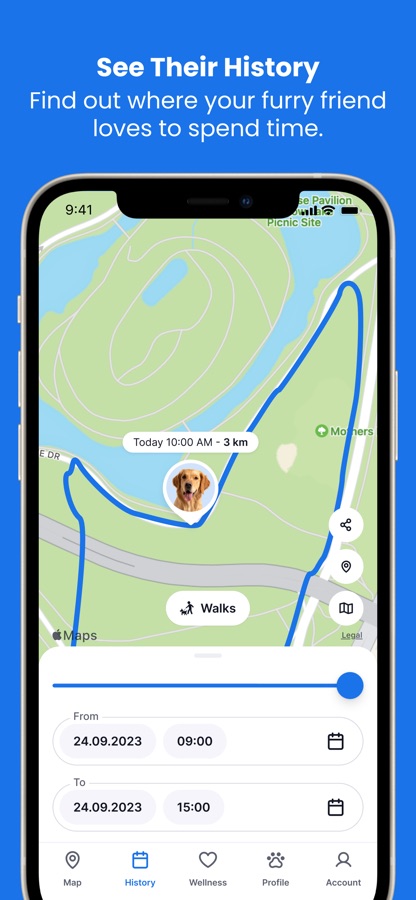 Позвольте друзьям, семье и другим людям, которым Вы доверяете (например, друзьям или няням), отслеживать местоположение и активность. Вы также можете поделиться своим местоположением в реальном времени с кем угодно одним касанием — очень полезно, если Ваш питомец убегает, и Вам нужна помощь, чтобы вернуть его домой.