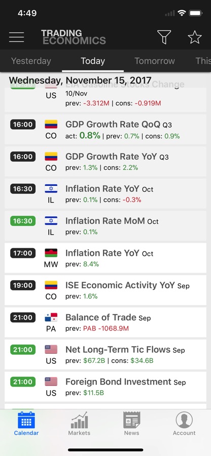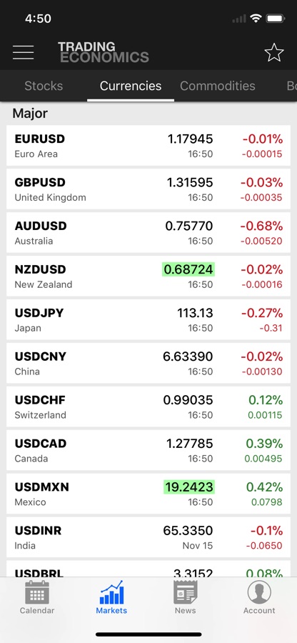 The Trading Economics app provides its users with an economic calendar, exchange rates, stock market indexes, government bond yields, and commodity prices. Users can also receive alerts for economic indicators the instant they get released. Set up price targets, price changes, and record high/low alerts for financial markets. With more than 380 million page views from more than 200 countries, TradingEconomics.com is a worldwide reference. Our data is based on official sources, not third-party data providers, and our facts are regularly checked for inconsistencies.