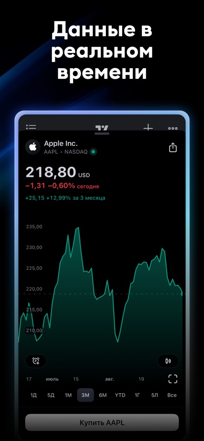 Будьте в курсе всего происходящего на финансовых рынках: котировки в реальном времени, новости, идеи, финансовая отчетность и многое другое. Все в одном приложении и всегда под рукой.