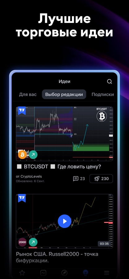 Используйте свою креативность при торговле на рынках, став частью крупнейшей социальной сети для трейдеров и инвесторов. С нами вы получите доступ к тысячам идей и мнений — обсуждайте, учитесь и делитесь собственным видением рынка.