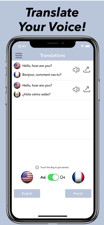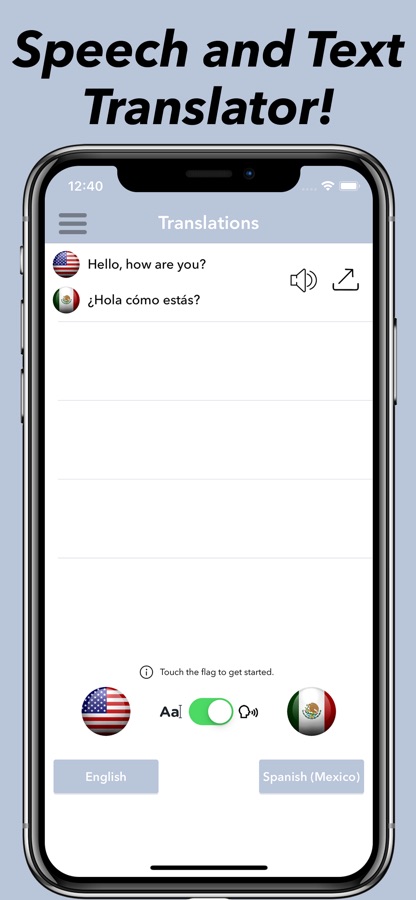 Speech & Text Translator allows you to translate your voice into another language that you can actually hear!