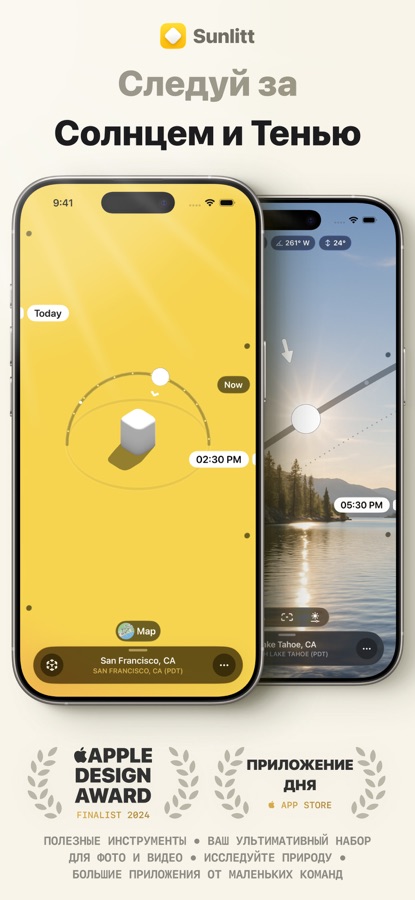 Будь вы фотографом, риелтором, дизайнером или любителем активного отдыха, Sunlitt — это ваш незаменимый инструмент для отслеживания пути солнца на небе.
