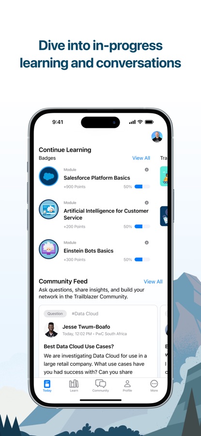 Learn in-demand Salesforce skills that drive your company and career forward. With free, bite-sized lessons across Agentforce, Data, AI, and more you can learn anytime, anywhere — even offline.
