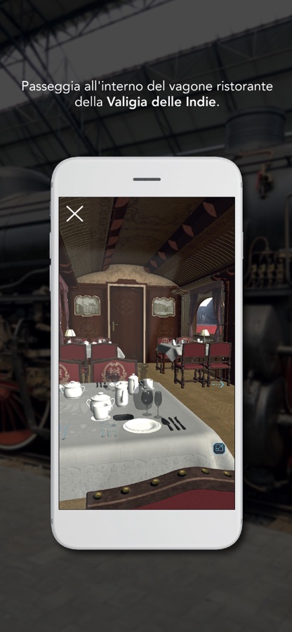 Con Train Stories puoi rivivere l’affascinante storia della «Valigia delle Indie» con la realtà aumentata. Accompagnato da Guido la Guida ripercorrerai il viaggio della locomotiva da Londra a Bombay, vedrai apparire davanti ai tuoi occhi la ricostruzione del lussuoso vagone ristorante che potrai percorrere in tutta la sua lunghezza e scoprirai come funziona una locomotiva a vapore.