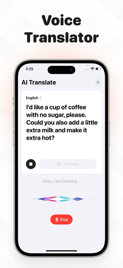 Translate AI делает глобальное общение простым и доступным. Путешествуете ли вы, учитесь, работаете с международными коллегами или общаетесь с друзьями, Translate AI поможет вам говорить и понимать более чем на 200 языках с естественными и точными результатами.