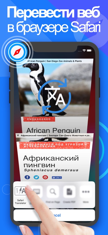 Бесплатно, чтобы попробовать! Переводите сайты и интернет в браузере Safari! мощный браузерный переводчик! 131 поддерживаемых языков, 2 клика для перевода!