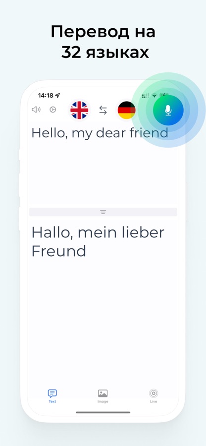 3. Приложение распознает вашу речь и переведет на лету на нужный язык