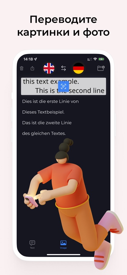 • Переводчик по фото, текста, речи, переводит текст на лету
