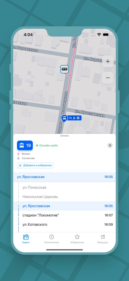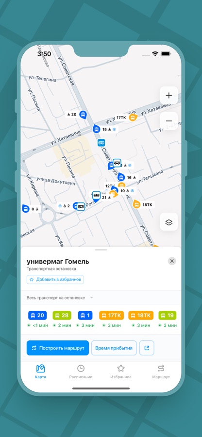 Отмечайте ваши любимые маршруты общественного транспорта звездочкой, чтобы быстро находить их в Избранном. Это можно делать на любой остановке. Теперь легко и быстро, всего одним нажатием можно перейти на остановку или посмотреть весь маршрут.