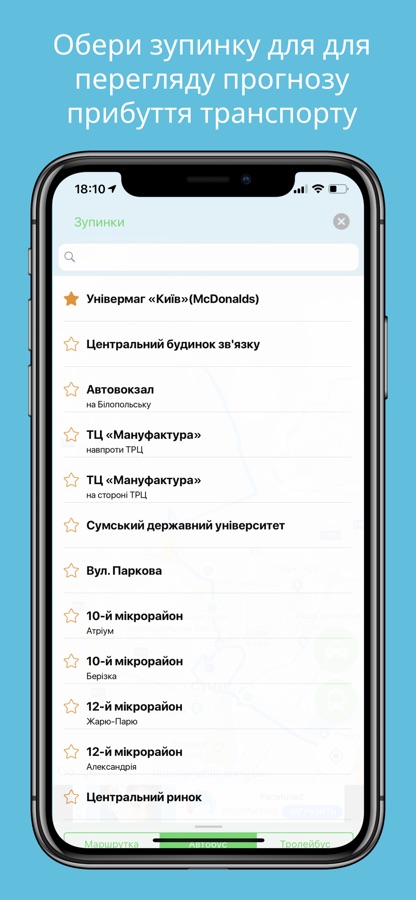 — На зупинках є прогнозування прибуття — просто обирай свою зупинку, та побач через скільки хвилин приїде потрібний автобус/маршрутка/тролейбус.