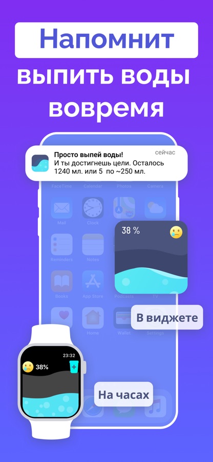 Контролируйте потребление воды, получайте напоминания пить воду в нужный момент и поддерживайте оптимальный уровень гидратации. Регулярное питье воды помогает улучшить самочувствие, поддерживать энергию и даже способствует похудению.