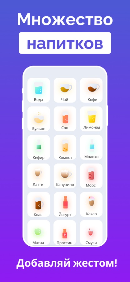 — Простое добавление напитков – одним жестом фиксируйте выпитую жидкость.