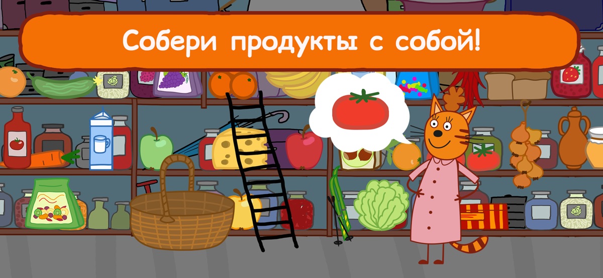 Развивающая игра для малышей «Три Кота Пикник» — собери продукты, накорми котиков и пройди все обучающие мини-игры!