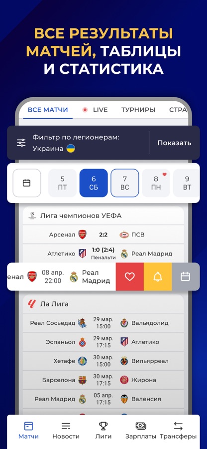 • Календарь, расписание, результаты, таблицы и сетку плей-офф каждого турнира – в удобном матч-центре;