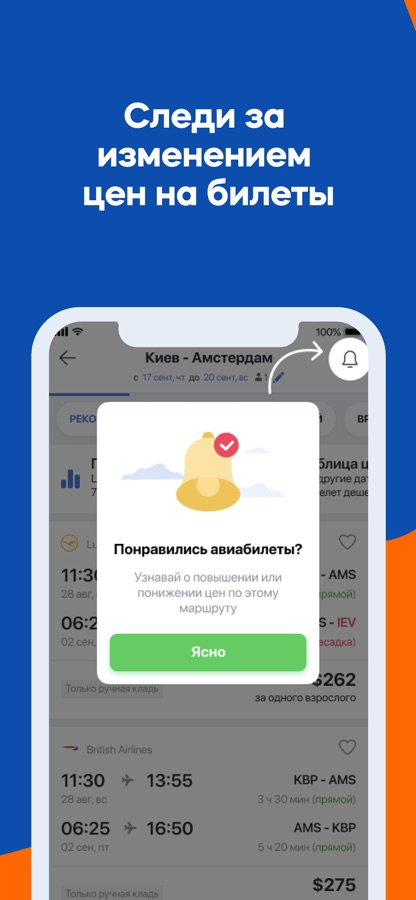 Мы сотрудничаем с крупнейшими агентствами и авиакомпаниями, поэтому всегда находим самые низкие цены. Ну и кроме ответа на вопрос куда лететь, мы подскажем когда покупать, так как научились прогнозировать изменения цен и знаем, когда будет самый лучший момент для покупки.