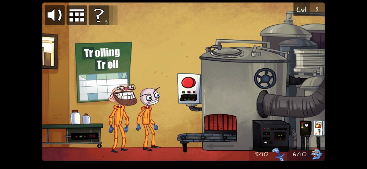 Этот нелепый мир непонятных головоломок заставит тебя биться головой об стену. Если не будешь держать себя в руках, то эти безумные уровни, полные непрекращающегося троллинга, мигом доведут тебя до психушки. Старайся сохранять спокойствие и обыгрывай беспощадных троллей в их собственной игре!