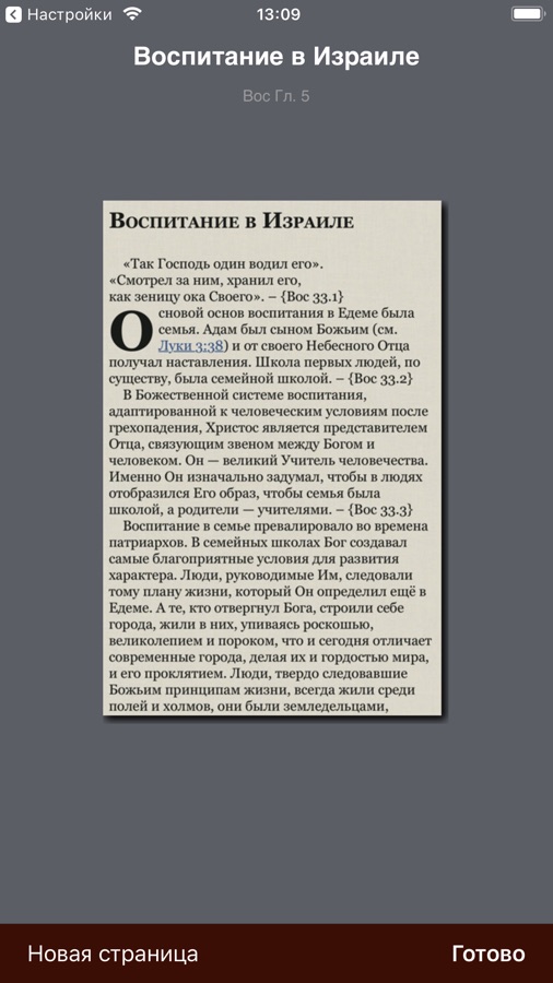 Легкое передвижение по библиотеке трудов Елены Уайт с помощью прокрутки списка заголовков, выбора книги и затем главы книги