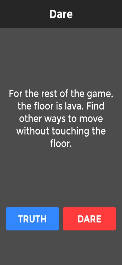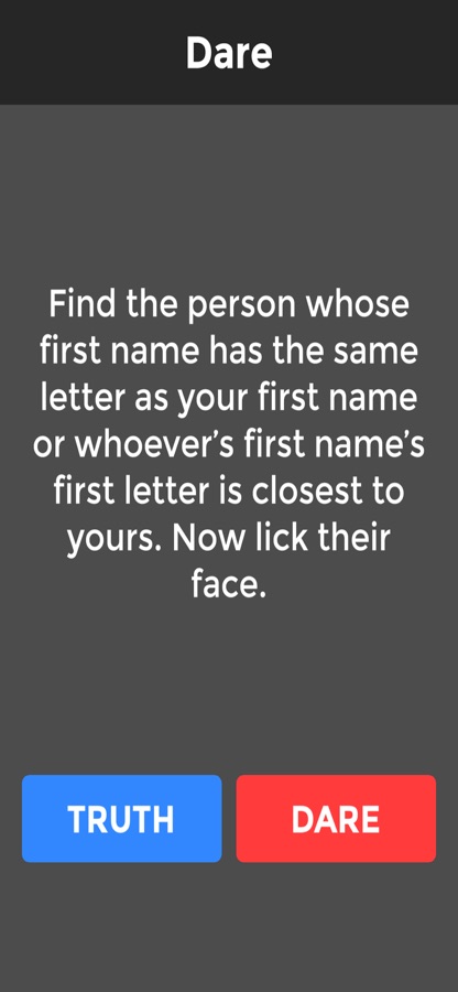 Are you ready to inject some fun into your house party? Download Truth or Dare now — full of crazy truths and funny dares this game will put an end to boredom and make you learn things about your friends that you wish you had never asked! This game is suitable for 2 players and up so anything from couples through to large groups — add some playful fun to your party or play as a drinking game with forfeits.