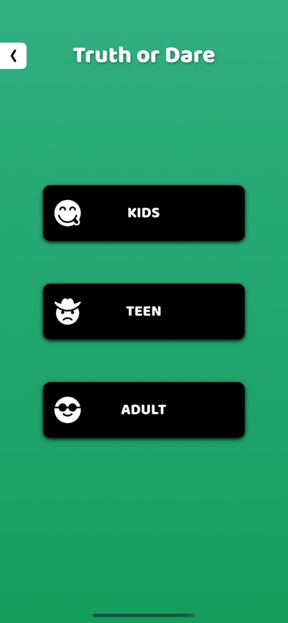 10. 3 different game modes — truth and dare app for kids, truth and dare app for teenagers, truth and dare app for adults