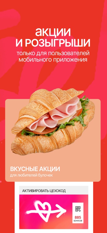 Мобильное приложение сети кафе-пекарен Цех85 — твой удобный способ заказать напитки, готовую еду, булочки, круассаны, пирожные и торты.