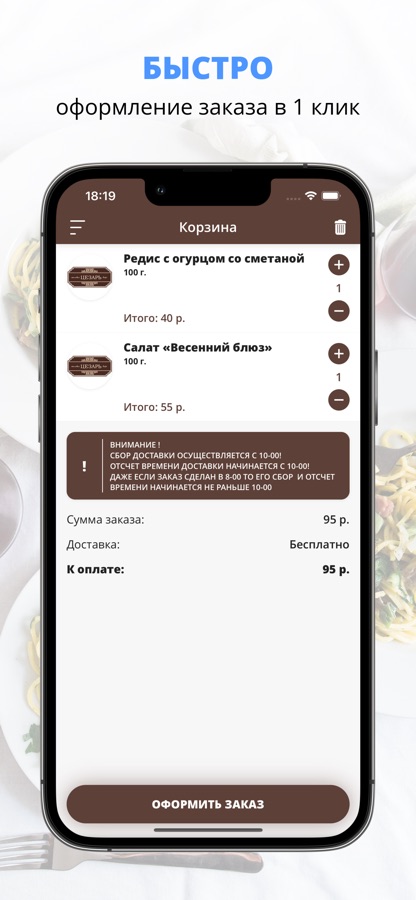 Воспользуйтесь удобным приложением для заказа еды из столовой «Цезарь»!