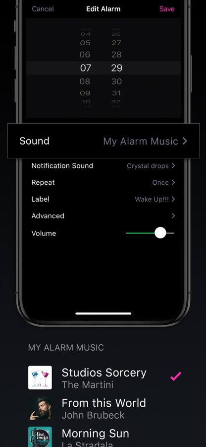 • Unlimited Alarms: Apple Music or Alarm Sounds