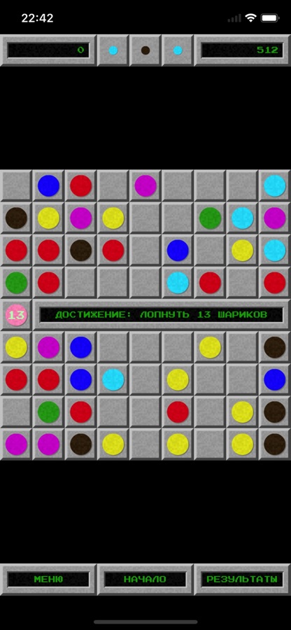 Чтобы переместить шарик, нужно нажать на него, а затем нажать на пустую клетку. Но нельзя переместить шарик, если его путь блокирован другими шариками. Шарики двигаются только по горизонтали и вертикали.