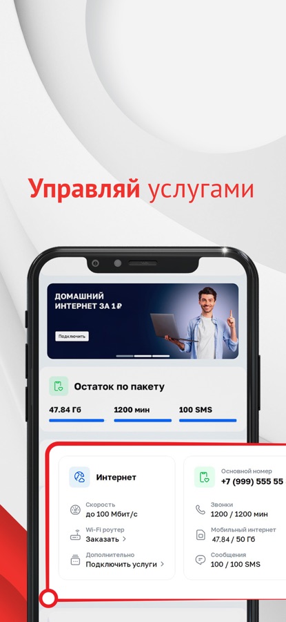 Актуальная информация о состоянии счета и подключенных услугах на экране вашего телефона: стоимость, скорость интернета, количество ТВ-каналов, подключенные услуги