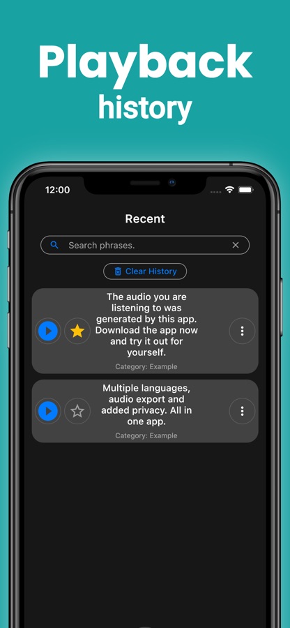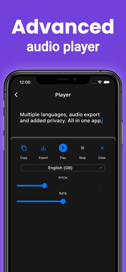 Various voices, multiple languages, audio export and added privacy. All in one app.