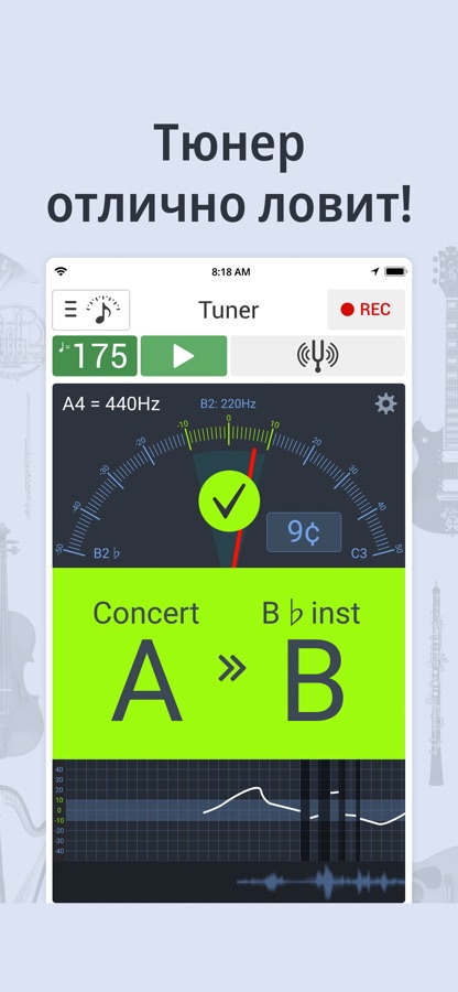 Скачайте приложение Тюнер и Метроном для iOS бесплатно - последняя версия (10.7.5) уже доступна для установки на ваш iPhone или iPad.