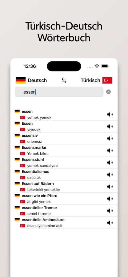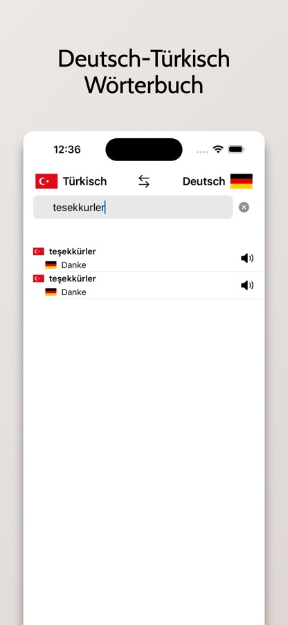 — Möglichkeit, um nach Wörtern sowohl auf Deutsch als auch auf Türkisch suchen.
