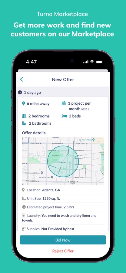 • Grow your cleaning business: find new customers in your area on the Turno Marketplace (TurnoverBnB). Set your own prices and bid for free!