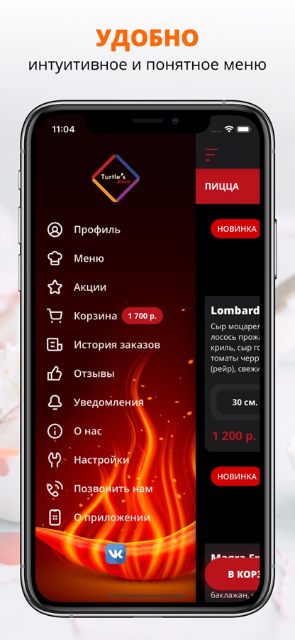 Приложение TURTLE’S PIZZA — это удобный и быстрый способ заказа готовой еды с доставкой на дом или в офис!