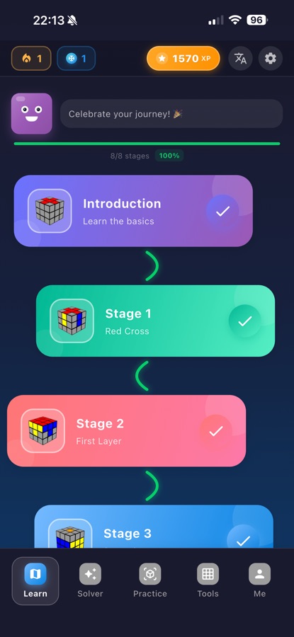 Whether you’re holding a Rubik’s Cube for the first time or chasing a new personal best, this app is your all-in-one cubing companion.