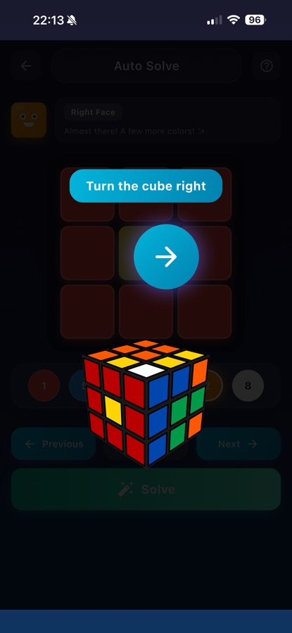 • Smart Auto-Solver – Stuck on a scramble? Paint your cube’s colors on screen and get the fastest step-by-step solution in real time.